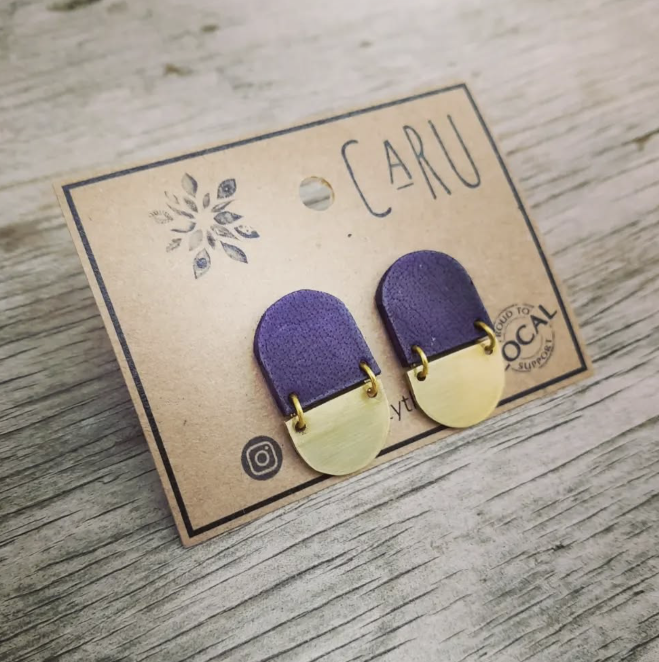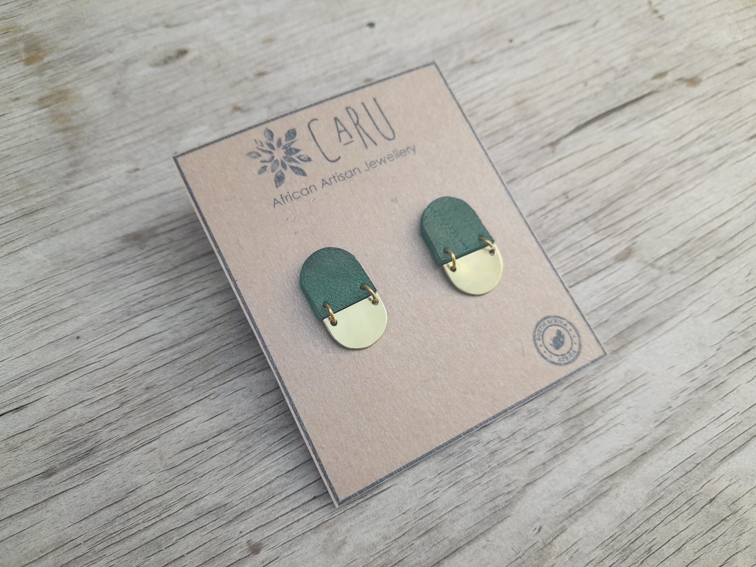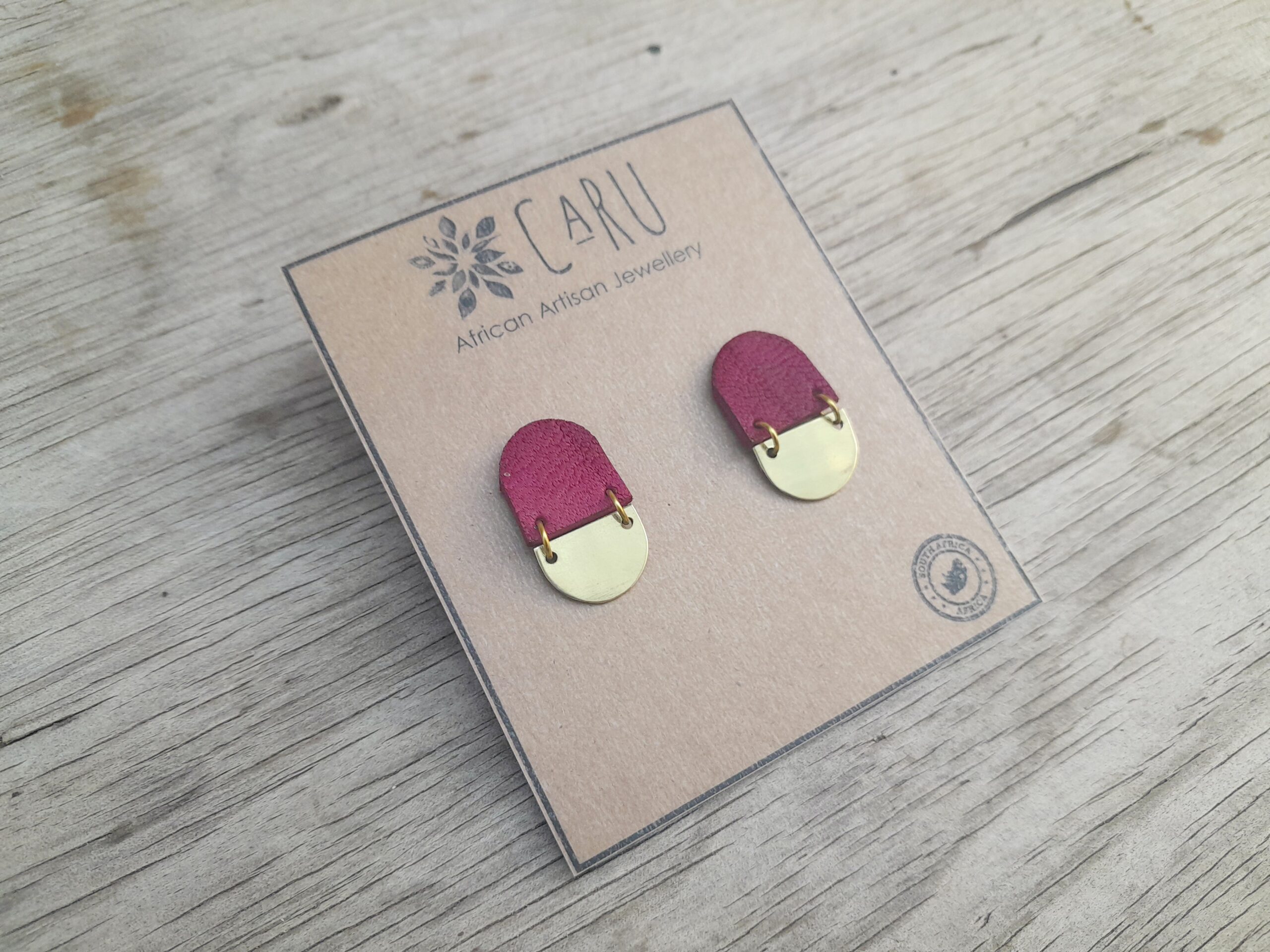 These modern stud earrings showcase a unique design featuring a top made from genuine leather shaped like a door, paired with a hand-cut brass base that mirrors the same door shape. The elements are connected by handcrafted brass rings, allowing for a delightful dangle effect from the stud. Perfect for both everyday wear and evening events, these earrings blend comfort with style effortlessly.